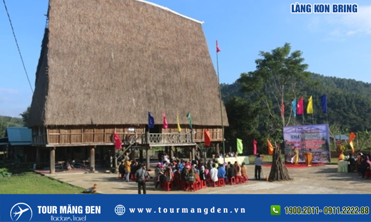 Làng Kon Bring là điểm đến du lịch cộng đồng nổi bật gần Măng Đen, nơi lưu giữ trọn vẹn nét văn hóa truyền thống của người Mơ Nâm. Với nhà rông cao vút, nhà sàn mộc mạc, âm vang cồng chiêng và không gian rừng thông yên bình, Kon Bring mang đến cho du khách trải nghiệm “sống chậm”, hòa mình vào thiên nhiên và khám phá bản sắc Tây Nguyên chân thực, gần gũi.
